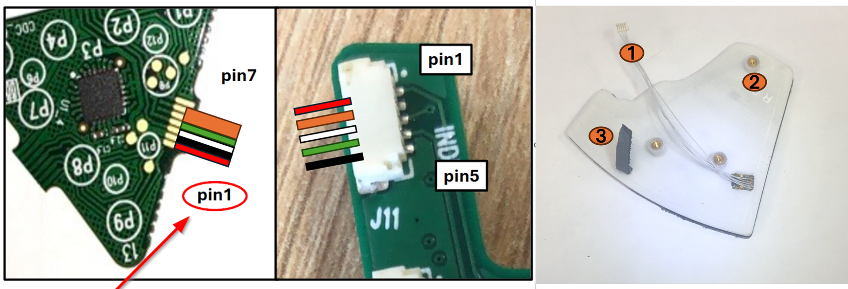 | J10-J15 | JST SURS | fingertips and palm - corresponding to J1 |
